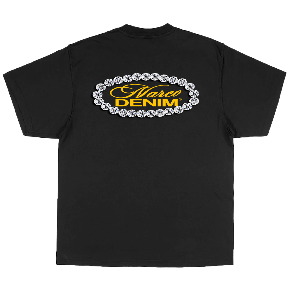 A staple executed with precision. The Diamond Logo Tee pairs a clean black base with our signature Narco Denim script framed in a diamond-set oval, delivering subtle luxury with everyday wearability. Minimal on the front, statement on the back—this piece moves effortlessly from street to upscale.